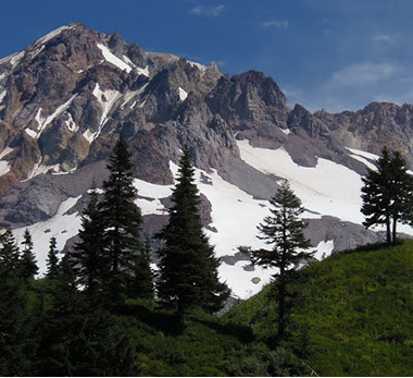 PDF format!The Timberline Trail circling Mt Hood offers virtually everything a hiker could dream of: spectacular views, alpine meadows carpeted with wildflowers, beautiful streams and glacier-fed rivers, quiet forests and no crowds. The 41-mile trail runs mostly at the timberline and drops in and out of canyons carved by the rivers that flow from the many glaciers on the mountain.