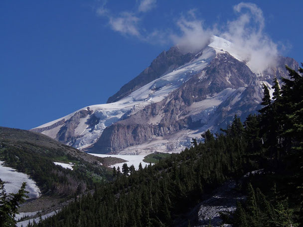 PDF formatThe Timberline Trail circling Mt Hood offers virtually everything a hiker could dream of: spectacular views, alpine meadows carpeted with wildflowers, beautiful streams and glacier-fed rivers, quiet forests and no crowds. The 41-mile trail runs mostly at the timberline and drops in and out of canyons carved by the rivers that flow from the many glaciers on the mountain.